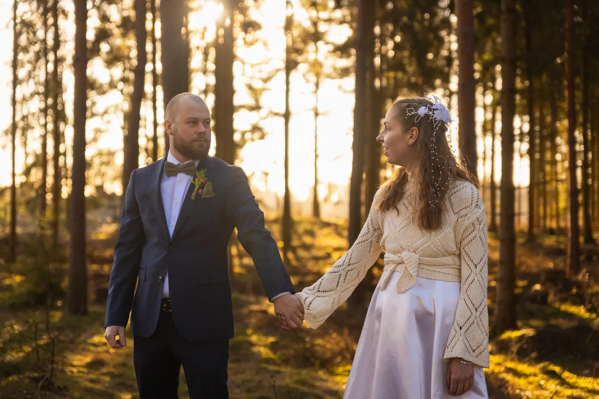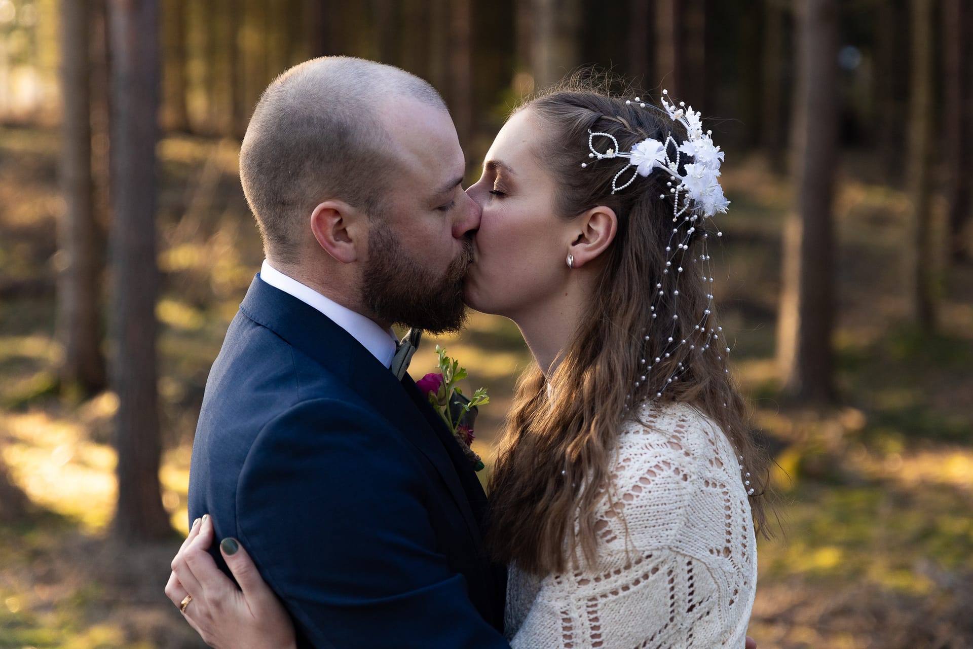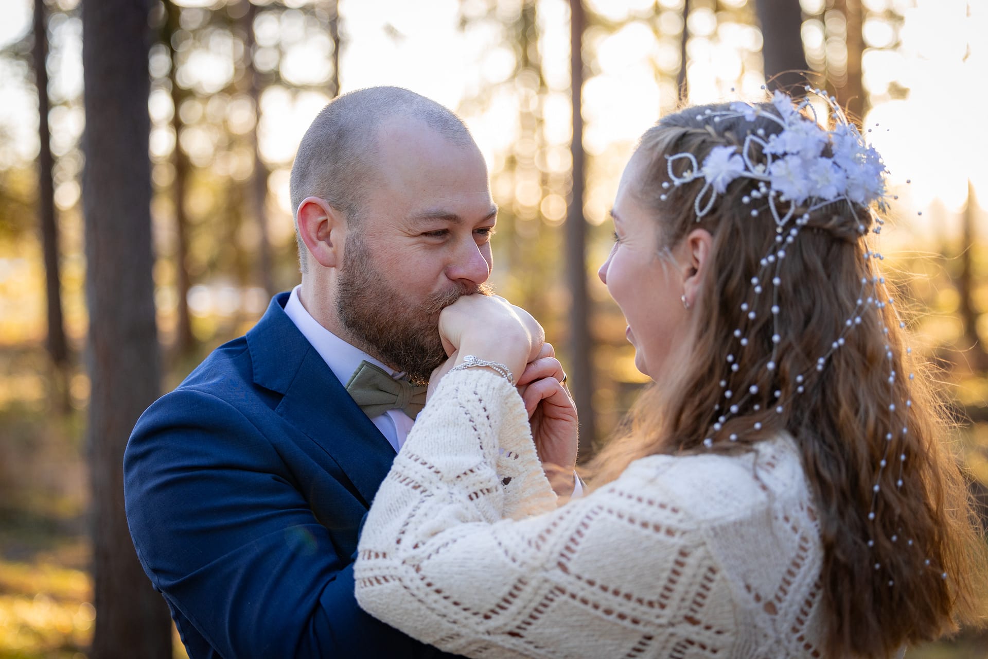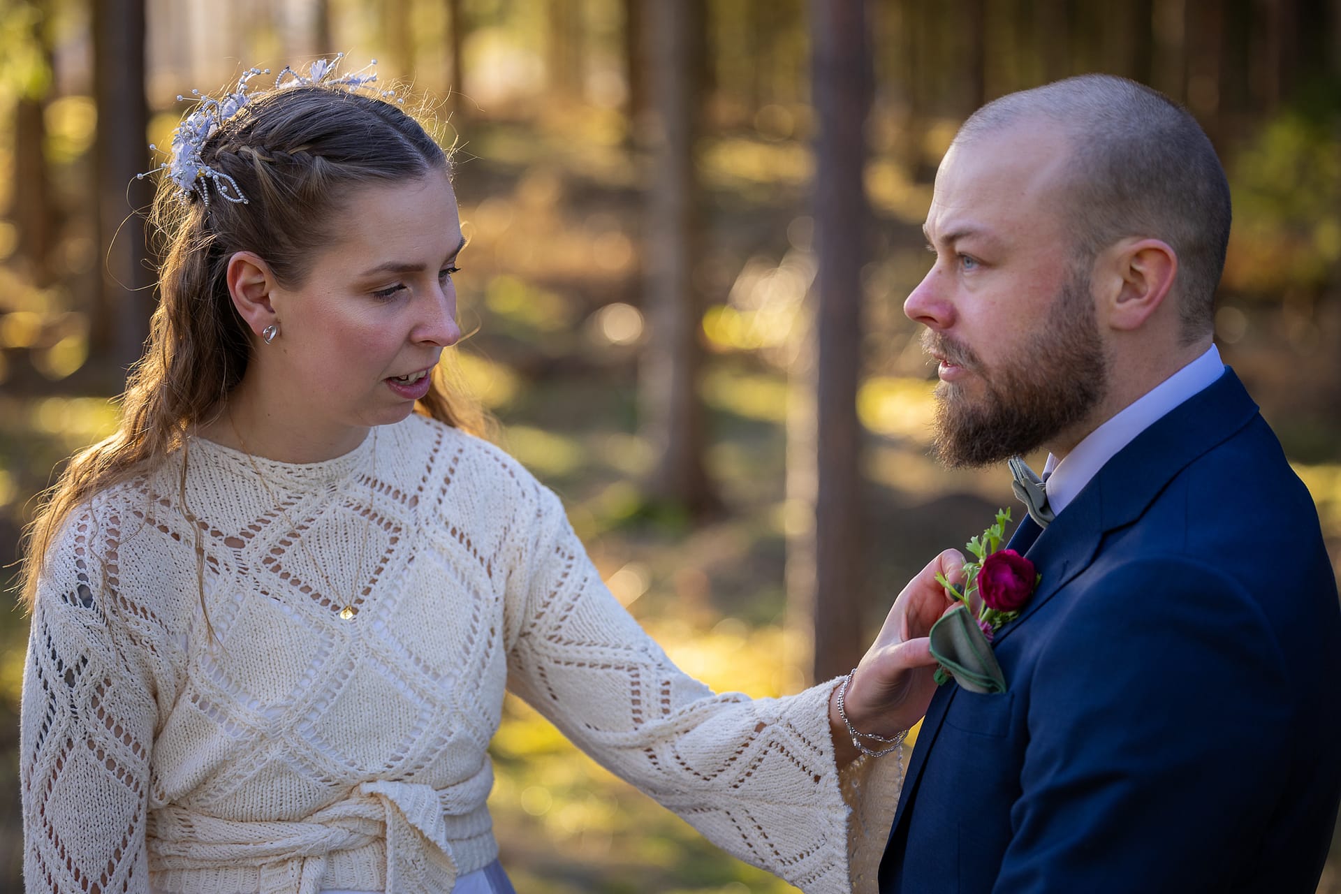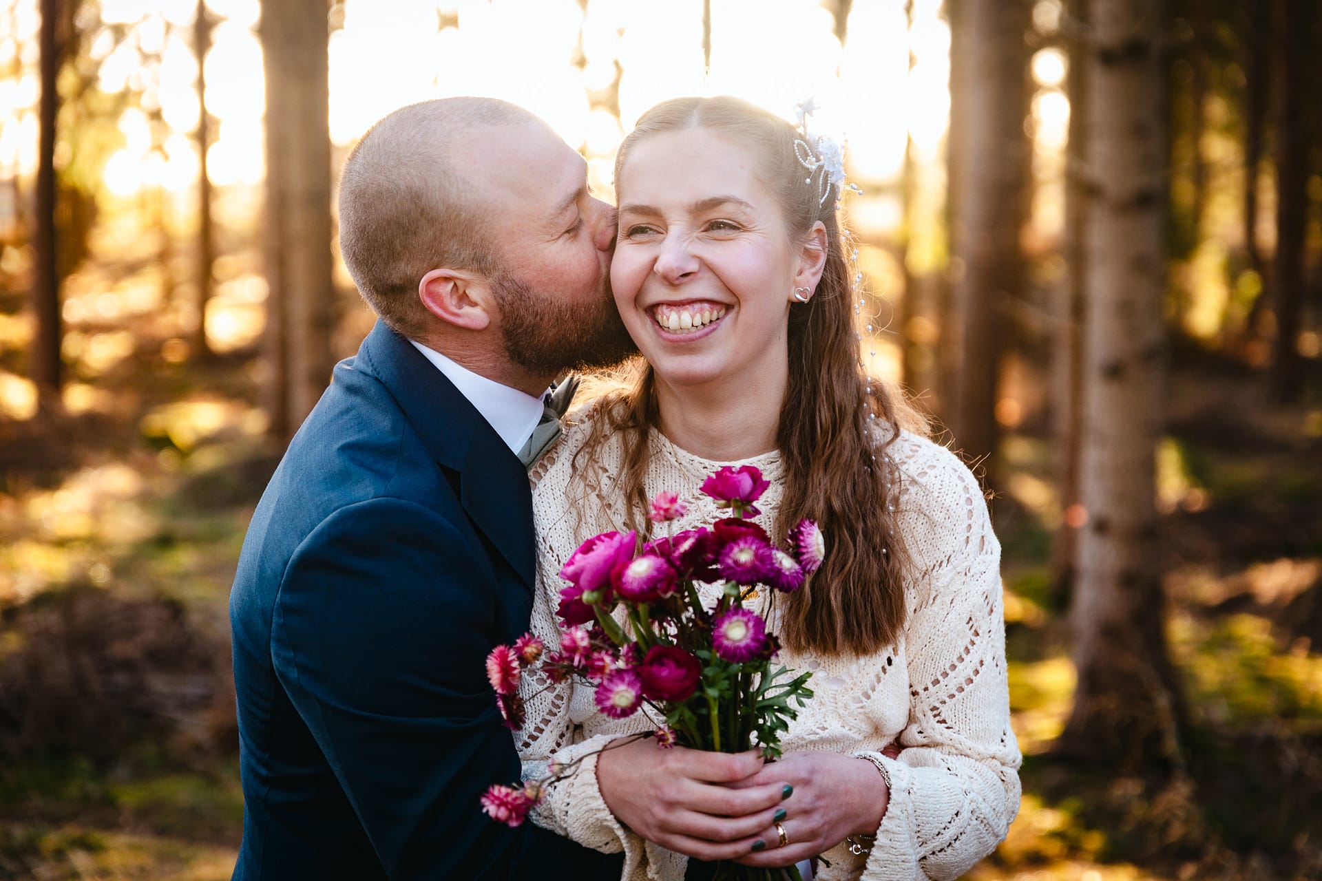 En vacker februaridag var jag med som andrefotograf på det här parets bröllopsdag. De gifte sig i vackra Vånga kyrka i Östergötland. Och även om snön, som bara nån vecka innan låg djup, precis smälte bort så blev det ju sagolikt vackert i skogsgläntan ändå med det gyllene solskenet mellan trädstammarna.